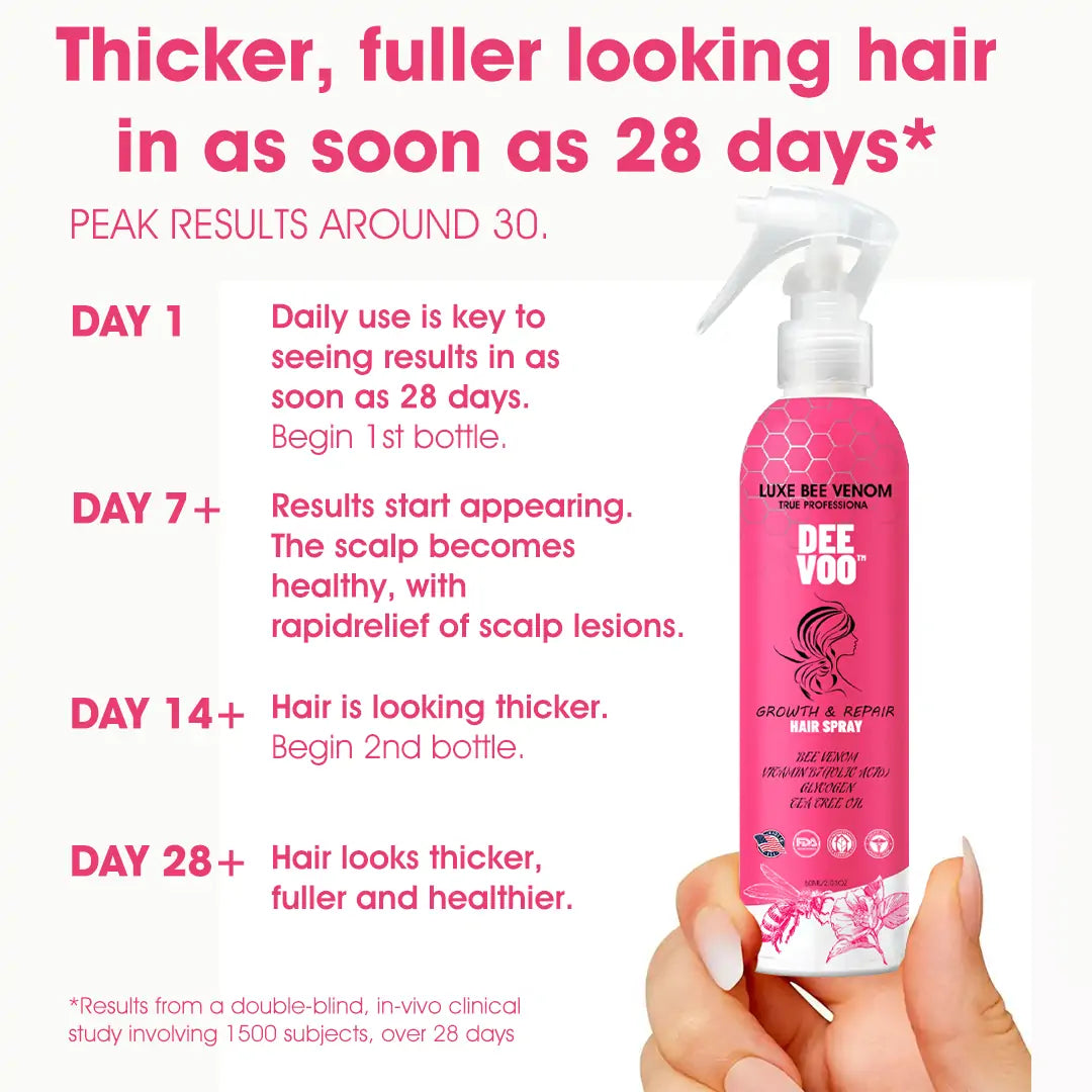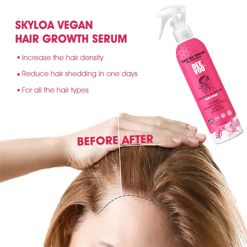 DeeVoo™ Luxe Bee venom Scalp Treatment HairGrᴏᴡth Hair Spray is Considered to be the most effective hair nutrition product in 2023 and it's highly recommended by Dr.Melanie Palm."DeeVoo™ Hair Spray is an incredibly powerful yet affordable solution that harnesses the power of premium ingredients to boost blood circulation to the hair follicles, fight hair diseases, improve hair softness and antioxidant capacity, and relieve the symptoms of scalp inflammation. It comprehensively solves the problems of hair loss, thinning hair, alopecia areata, scalp psoriasis, fungal infection, itchy scalp or damaged hair, and is safe to use, having been FDA certified with no allergic reactions or side effects. Plus, it provides the essential nutrients needed for hair growth and a healthy scalp, making DeeVoo an excellent maintenance and treatment solution!"