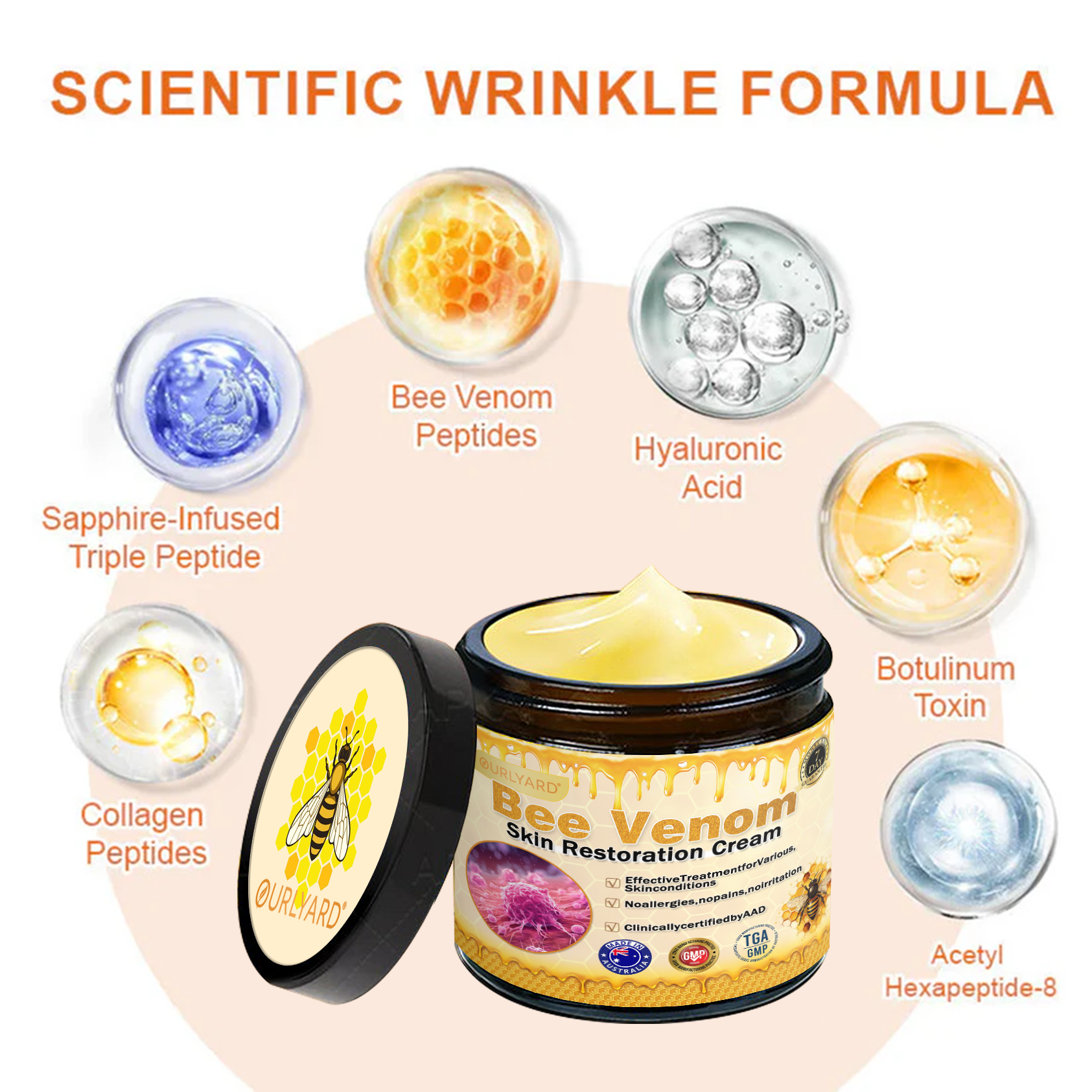 Ourlyard® Bee Venom Skin Restoration Cream addresses all the problems associated with sagging skin, wrinkles and more!